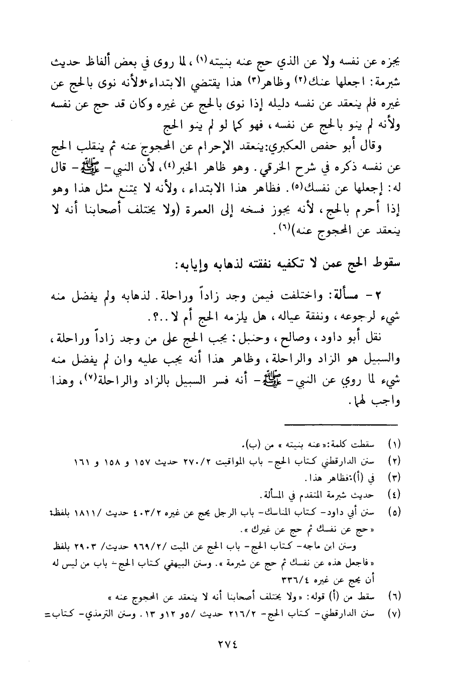 وقال أبو حفص العكبري: ينعقد الإحرام عن المحجوج عنه ثم ينقلب الحج عن نفسه ذكره في شرح الخرقي. وهو ظاهر الخبر، لأن النبي ـ صلى الله عليه وسلم قال له: اجعلها عن نفسك. فظاهر هذا الابتداء، ولأنه لا يمتنع مثل هذا وهو إذا أحرم بالحج، لأنه يجوز فسخه إلى العمرة (ولا يختلف أصحابنا أنه لا ينعقد عن المحجوج عنه).