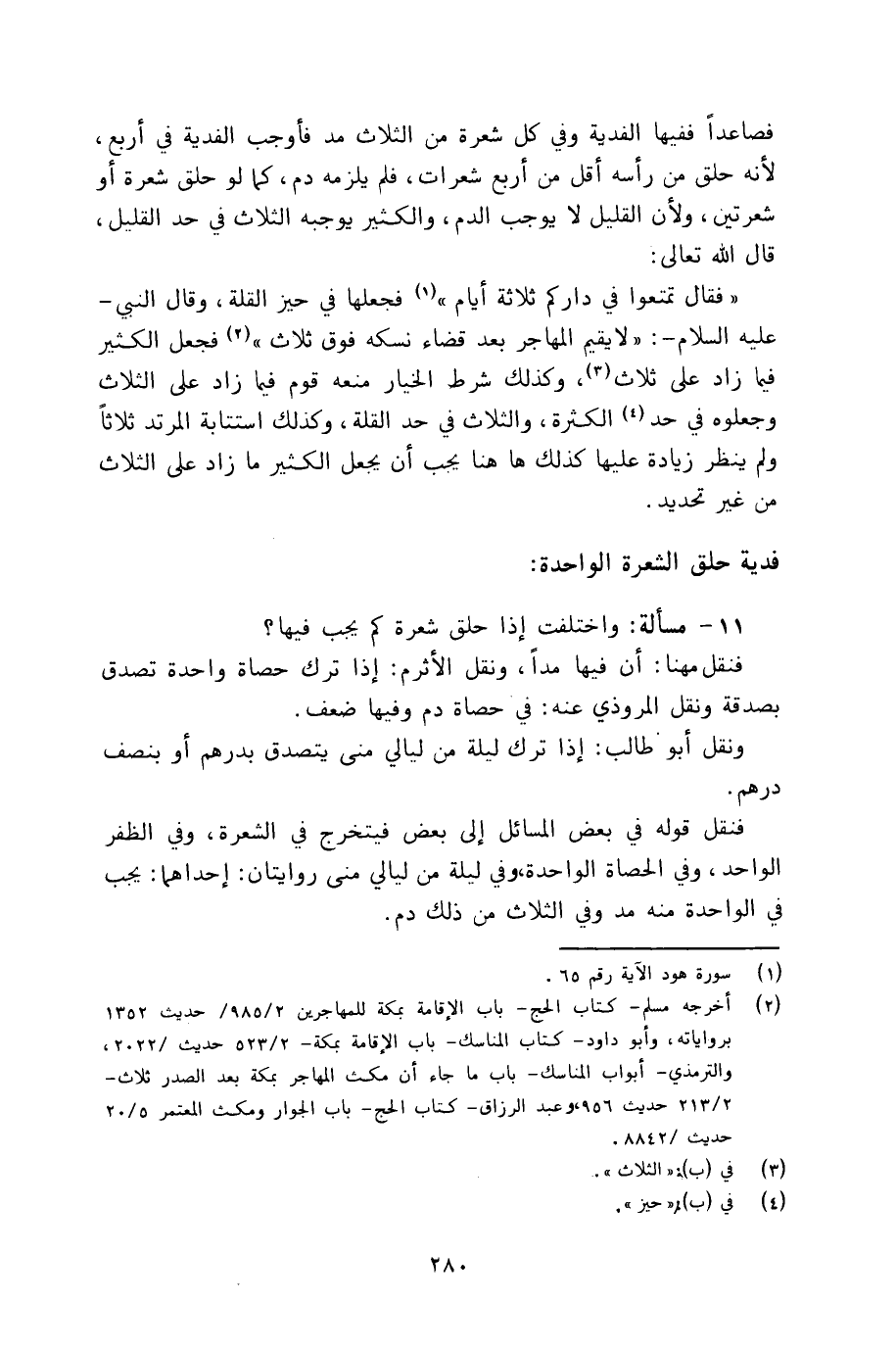 11 - مسألة: واختلفت إذا حلق شعرة كم يجب فيها؟