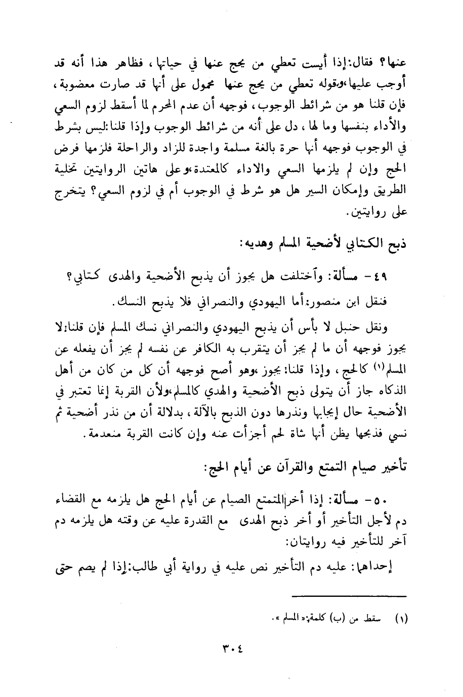 49 - مسألة: واختلفت هل يجوز أن يذبح الأضحية والهدى كتابي؟