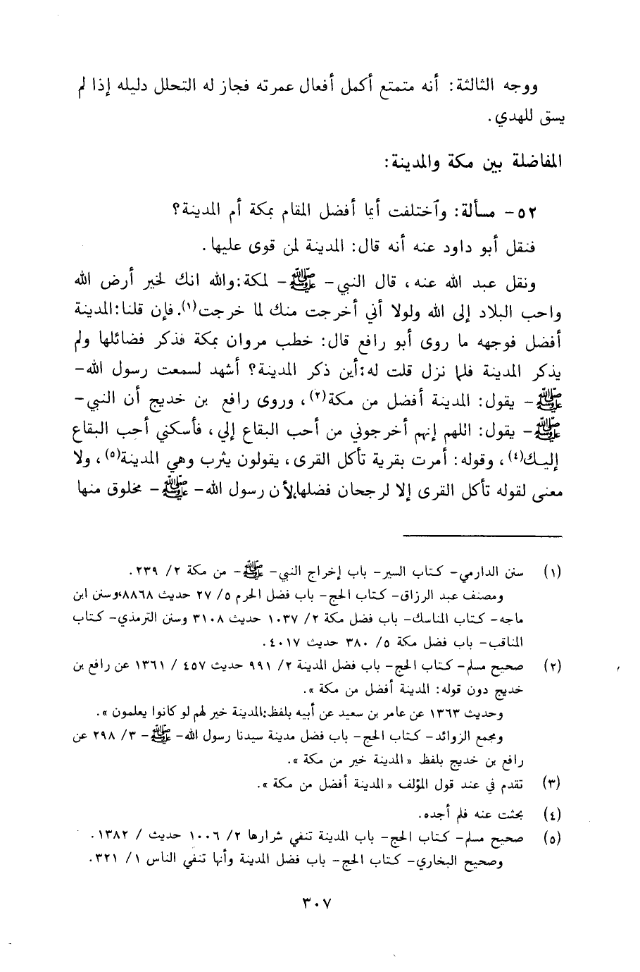 52 - مسألة: واختلفت أيما أفضل المقام بمكة أم بالمدينة؟