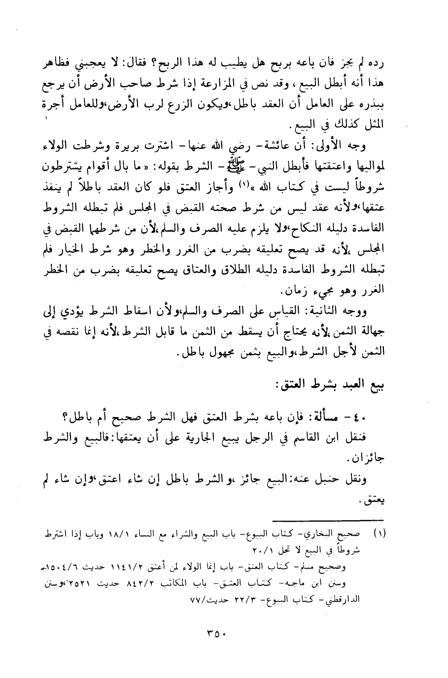 40 - مسألة: فإن باعه بشرط العتق فهل الشرط صحيح أم باطل؟
