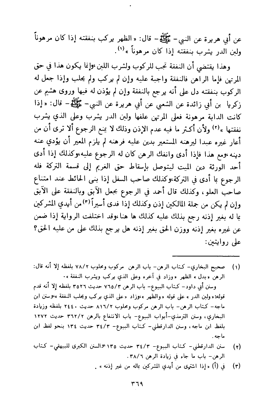 عن أبي هريرة عن ـ النبي صلى الله عليه وسلم ـ قال: الظهر يركب بنفقته إذا كان مرهوناً ولبن الدر يشرب بنفقته إذا كان مرهوناً.