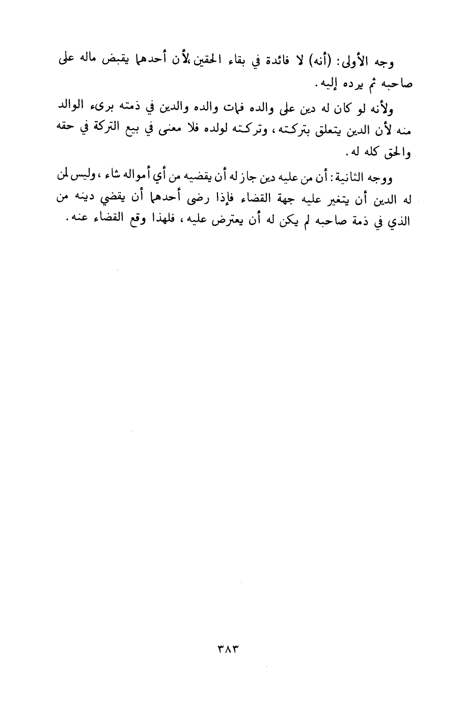 وجه الأولى: (أنه) لا فائدة في بقاء الحقين، لأن أحدهما يقبض ماله على صاحبه ثم يرده إليه.