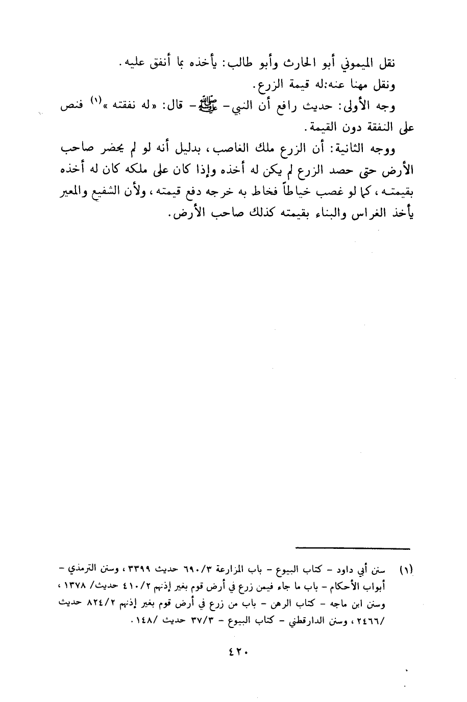وجه الأولى: حديث رافع أن ـ النبي صلى الله عليه وسلم ـ قال: له نفقته فنص على النفقة دون القيمة.