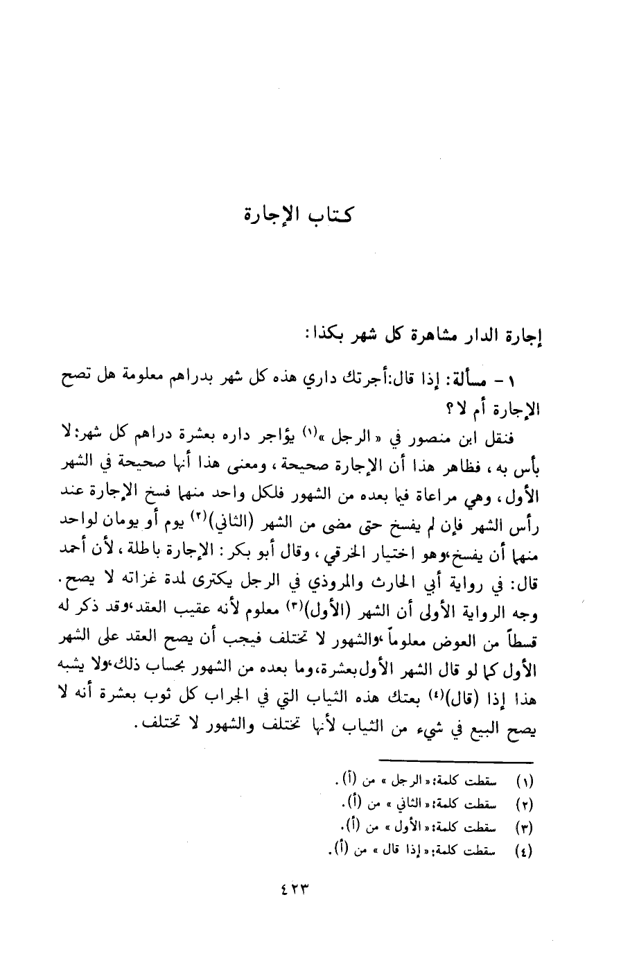 1 - مسألة إذا قال: أجرتك داري هذه كل شهر بدراهم معلومة هل تصح الإيجارة أم لا؟