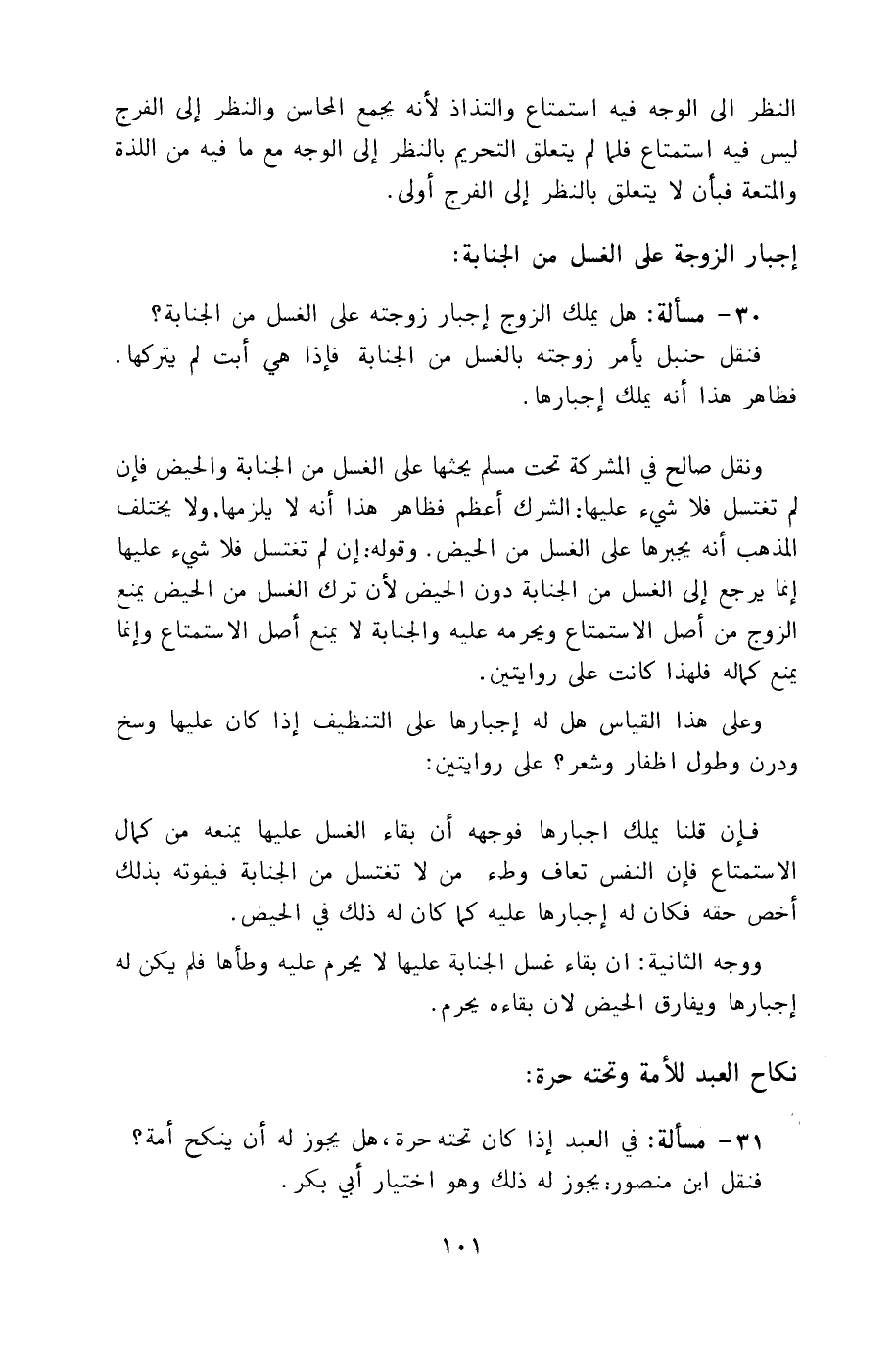 30 - مسألة: هل يملك الزوج إجبار زوجته على الغسل من الجنابة؟