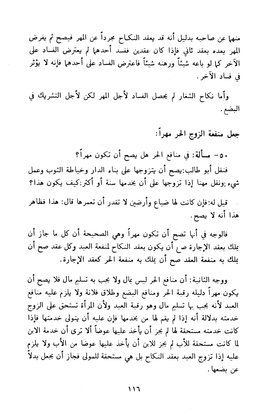 50 - مسألة: في منافع الحر هل يصح أن تكون مهراً؟
