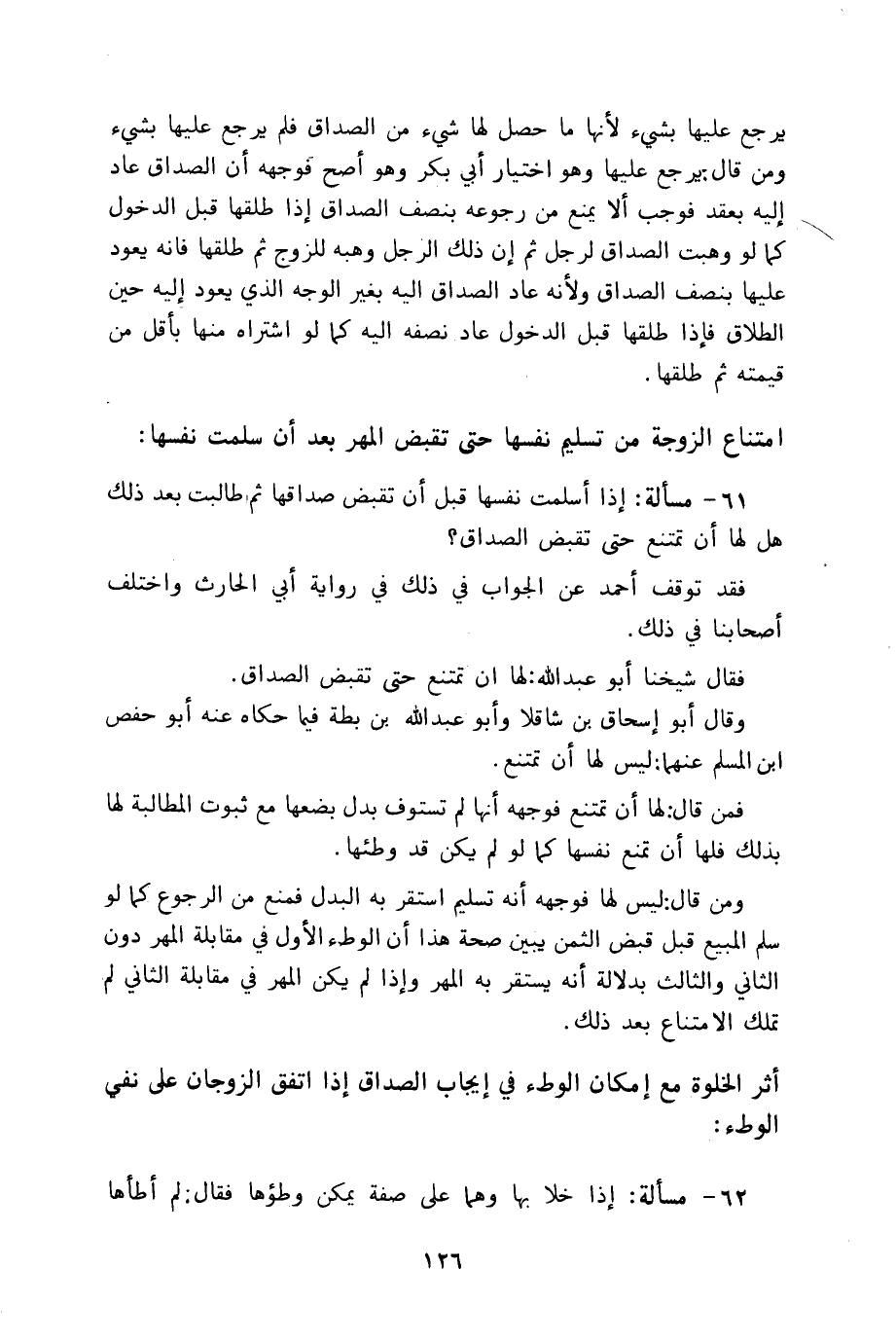 61 - مسألة: إذا أسلمت نفسها قبل أن تقبض صداقها ثم طالبت بعد ذلك هل لها أن تمتنع حتى تقبض الصداق؟