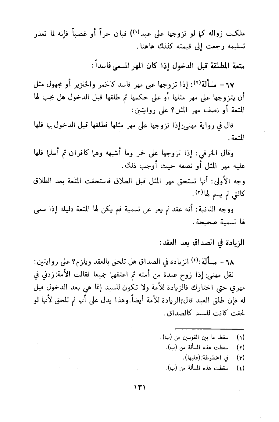 68 - مسألة: الزيادة في الصداق هل تلحق بالعقد ويلزم؟ على روايتين: