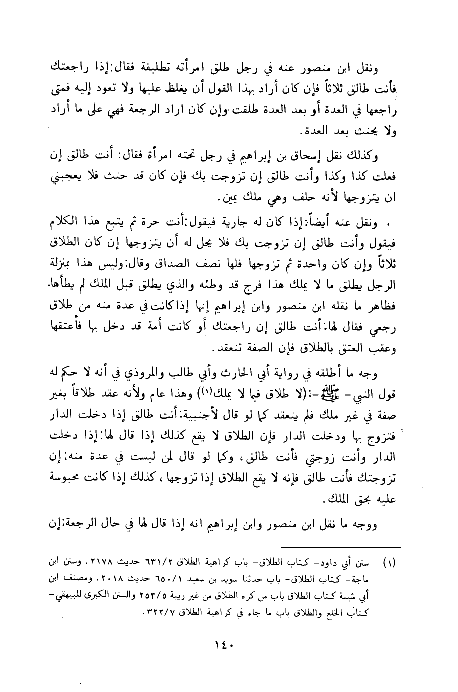 ونقل عنه أيضاً: إذا كان له جارية فيقول: أنت حرة ثم يتبع هذا الكلام فيقول وأنت طالق إن تزوجت بك فلا يحل له أن يتزوجها إن كان الطلاق ثلاثاً وإن كان واحدة ثم تزوجها فلها نصف الصداق وقال: وليس هذا بمنزلة الرجل يطلق ما لا يملك هذا فرج قد وطئه والذي يطلق قبل الملك لم يطأها. فظاهر ما نقله ابن منصور وابن إبراهيم إنها إذا كانت في عدة منه من طلاق رجعي فقال لها: أنت طالق إن راجعتك أو كانت أمة قد دخل بها فأعتقها وعقب العتق بالطلاق فإن الصفة تنعقد.