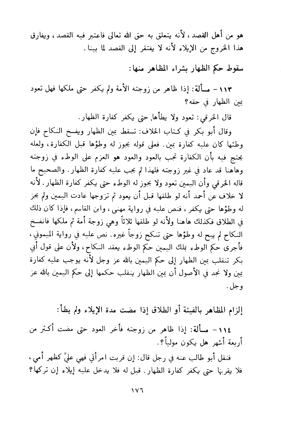 114 - مسألة: إذا ظاهر من زوجته فأخر العود حتى مضت أكثر من أربعة أشهر هل يكون مولياً؟