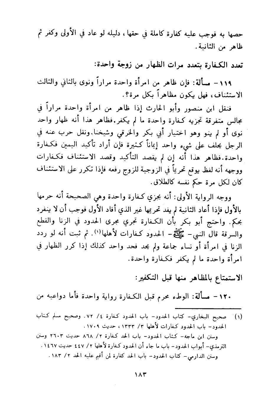 119 - مسألة: فإن ظاهر من امرأة واحدة مراراً ونوى الثاني والثالث الاستئناف، فهل يكون مظاهراً بكل مرة؟