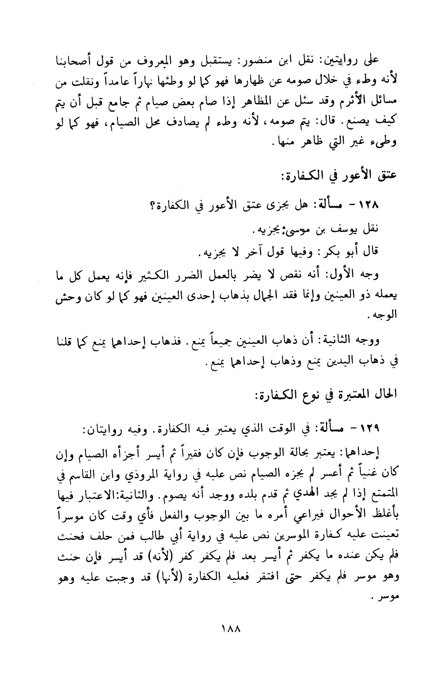 128 - مسألة: هل يجزى عتق الأعور في الكفارة؟