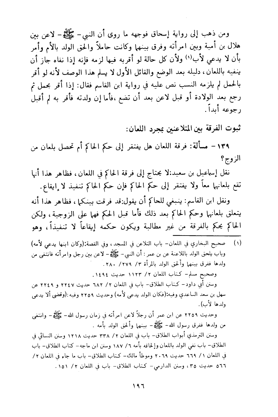 139 - مسألة: فرقة اللعان هل يفتقر إلى حكم الحاكم أم تحصل بلعان من الزوج؟