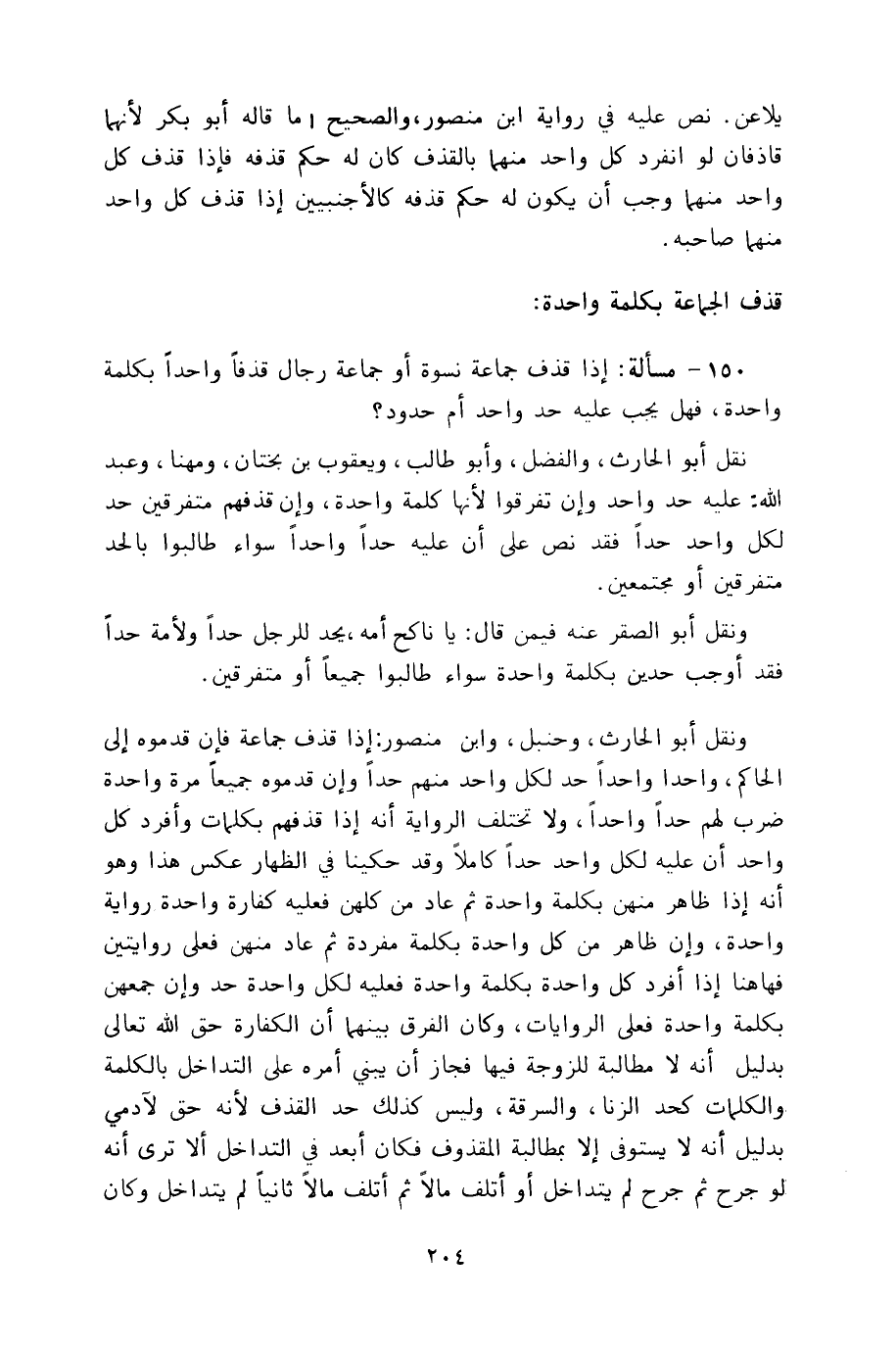 150 - مسألة: إذا قذف جماعة نسوة أو جماعة رجال قذفاً واحداً بكلمة واحدة، فهل يجب عليه حد واحد أم حدود؟