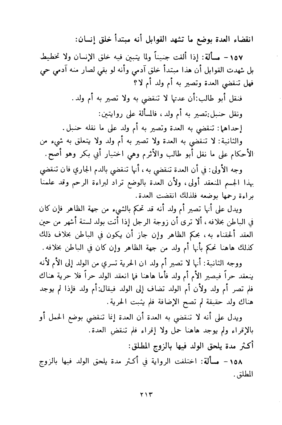158 - مسألة: اختلفت الرواية في أكثر مدة يلحق الولد فيها بالزوج المطلق.