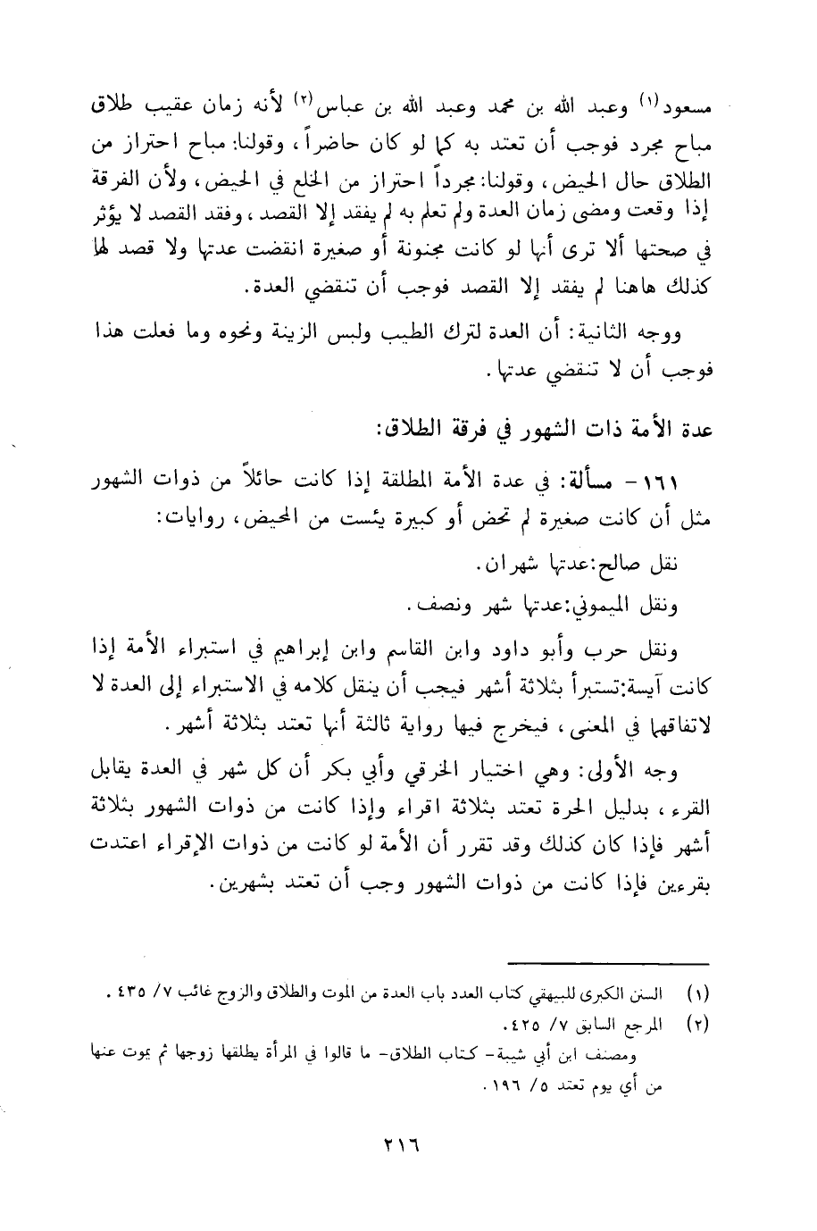 161 - مسألة: في عدة الأمة المطلقة إذا كانت حائلاً من ذوات الشهور مثل أن كانت صغيرة لم تحض أو كبيرة يئست من المحيض، روايات: