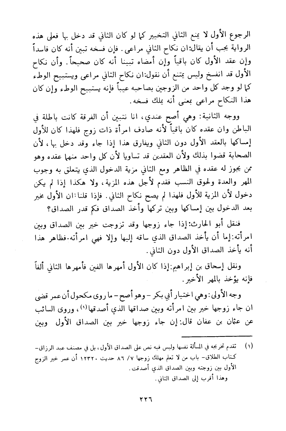 وجه الأولى: وهي اختيار أبي بكر ـ وهو أصح ـ ما روى مكحول أن عمر قضى إن جاء زوجها خير بين امرأته وبين صداقها الذي أصدقها، وروى السائب عن عثمان بن عفان قال: إن جاء زوجها خير بين الصداق الأول وبين
