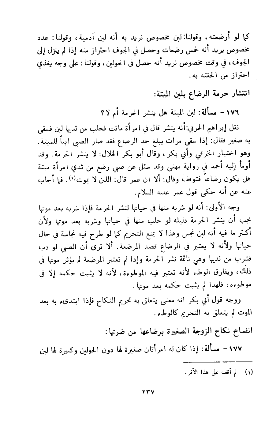 176 - مسألة: لبن الميتة هل ينشر الحرمة أم لا؟