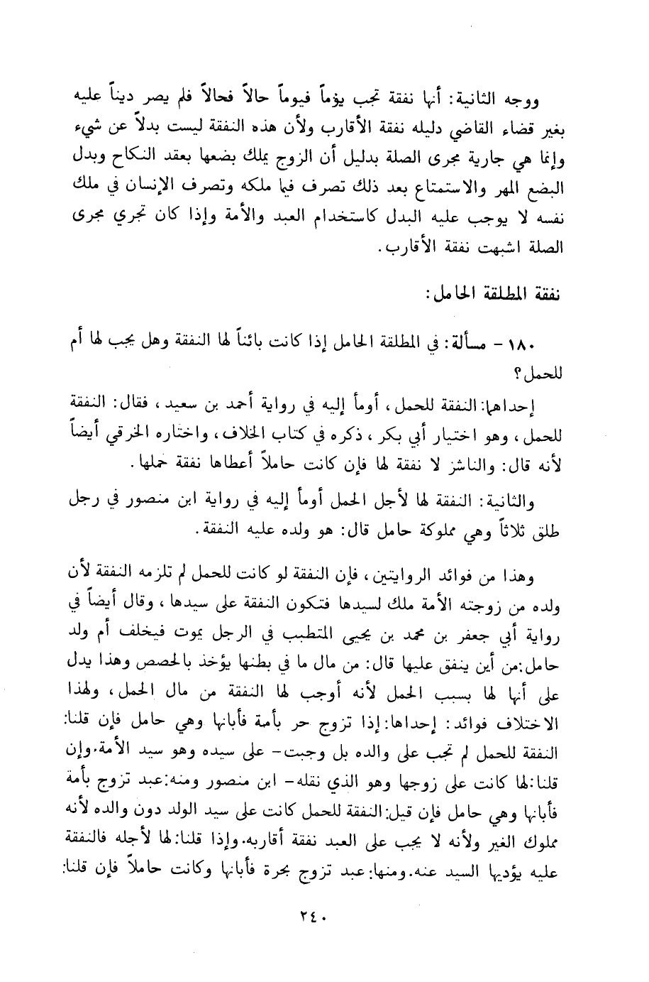 180 - مسألة: في المطلقة الحامل إذا كانت بائناً لها النفقة وهل يجب لها أم للحمل؟