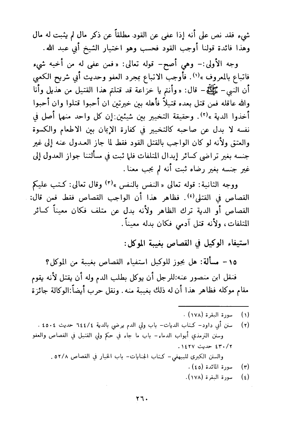 15 - مسألة: هل يجوز للوكيل استيفاء القصاص بغيبة من الموكل؟