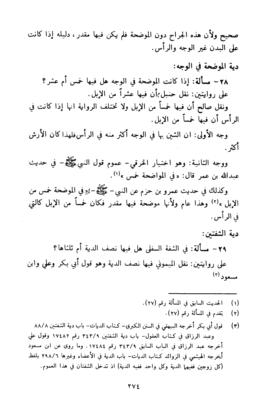 28 - مسألة: إذا كانت الموضحة في الوجه هل فيها خمس أم عشر؟