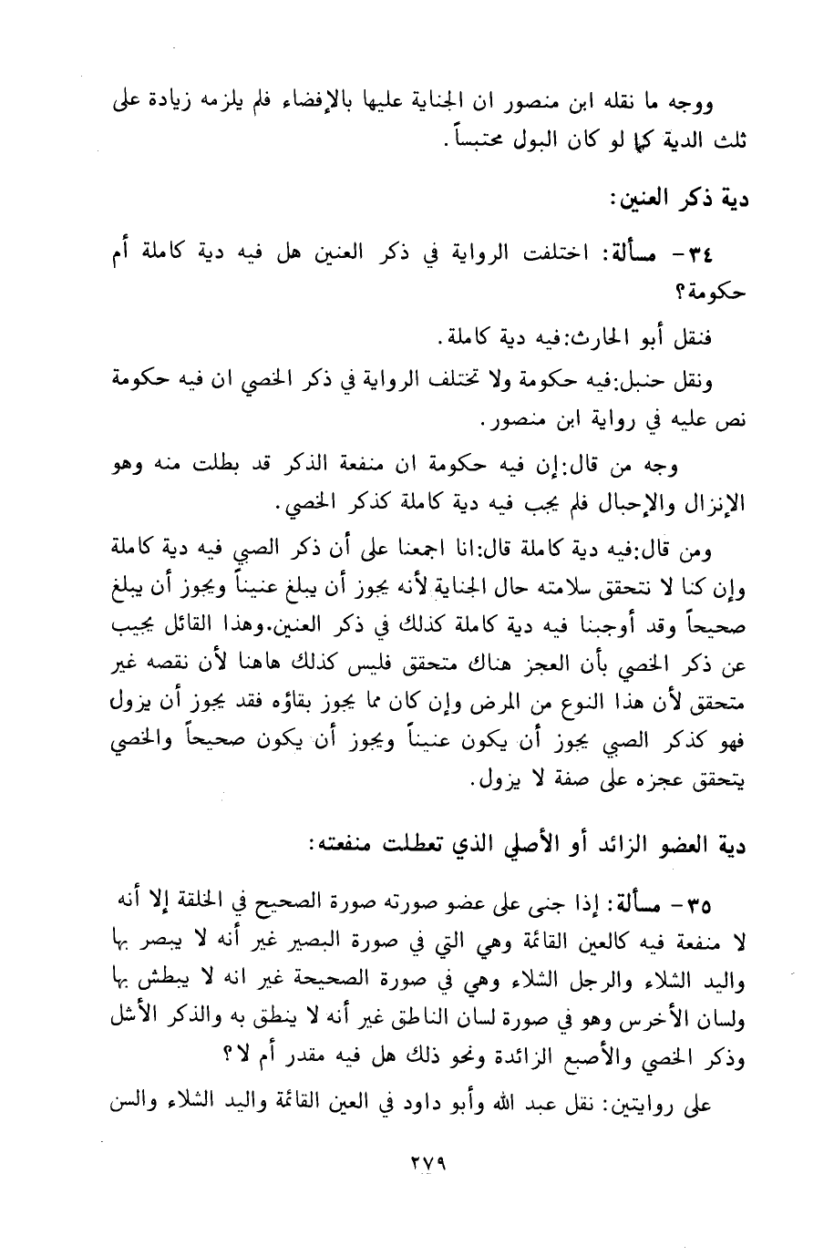 34 - مسألة: اختلفت الرواية في ذكر العنين هل فيه دية كاملة أم حكومة؟