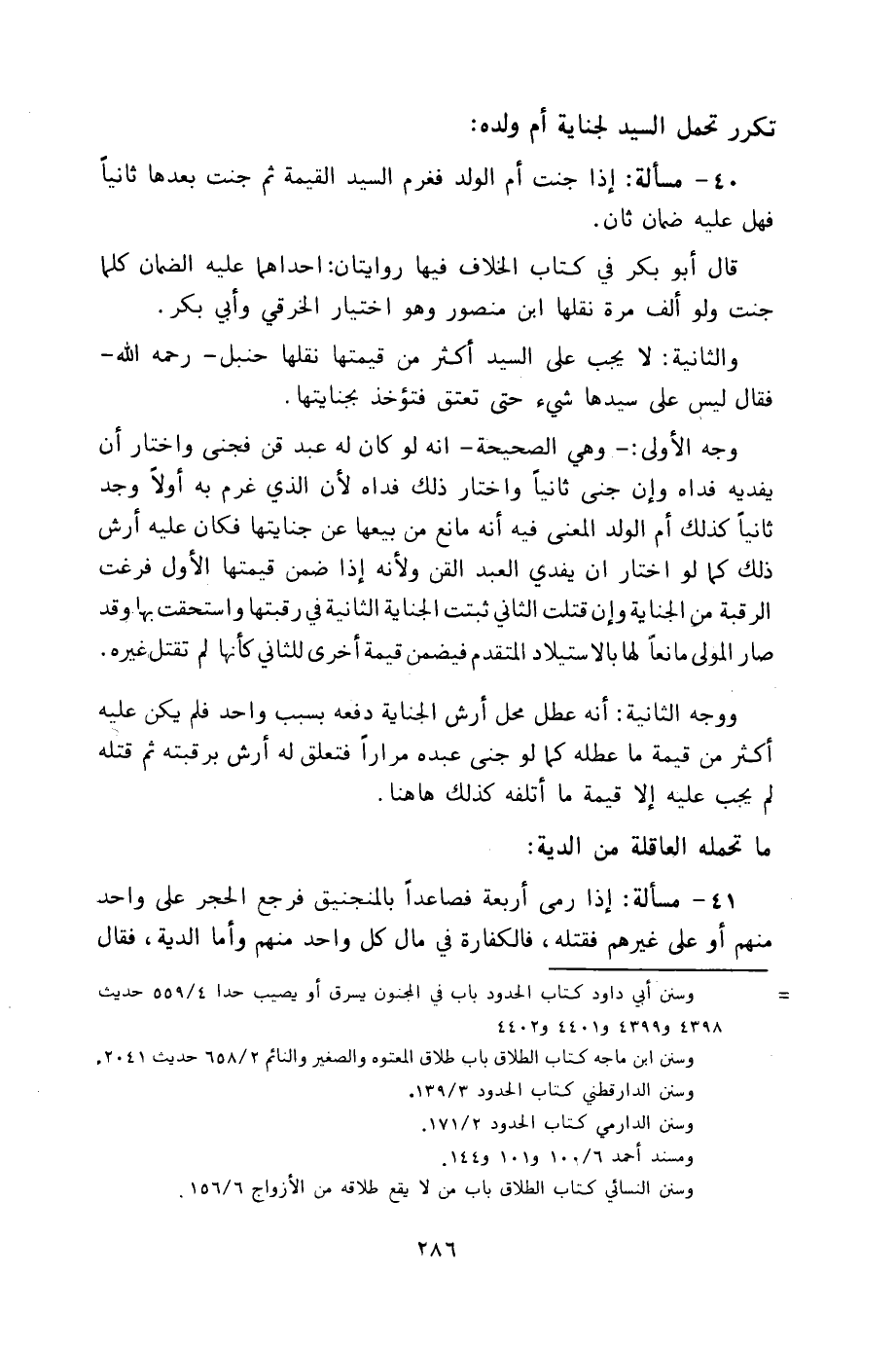 40 - مسألة: إذا جنت أم الولد فغرم السيد القيمة ثم جنت بعدها ثانياً فهل عليه ضمان ثان.