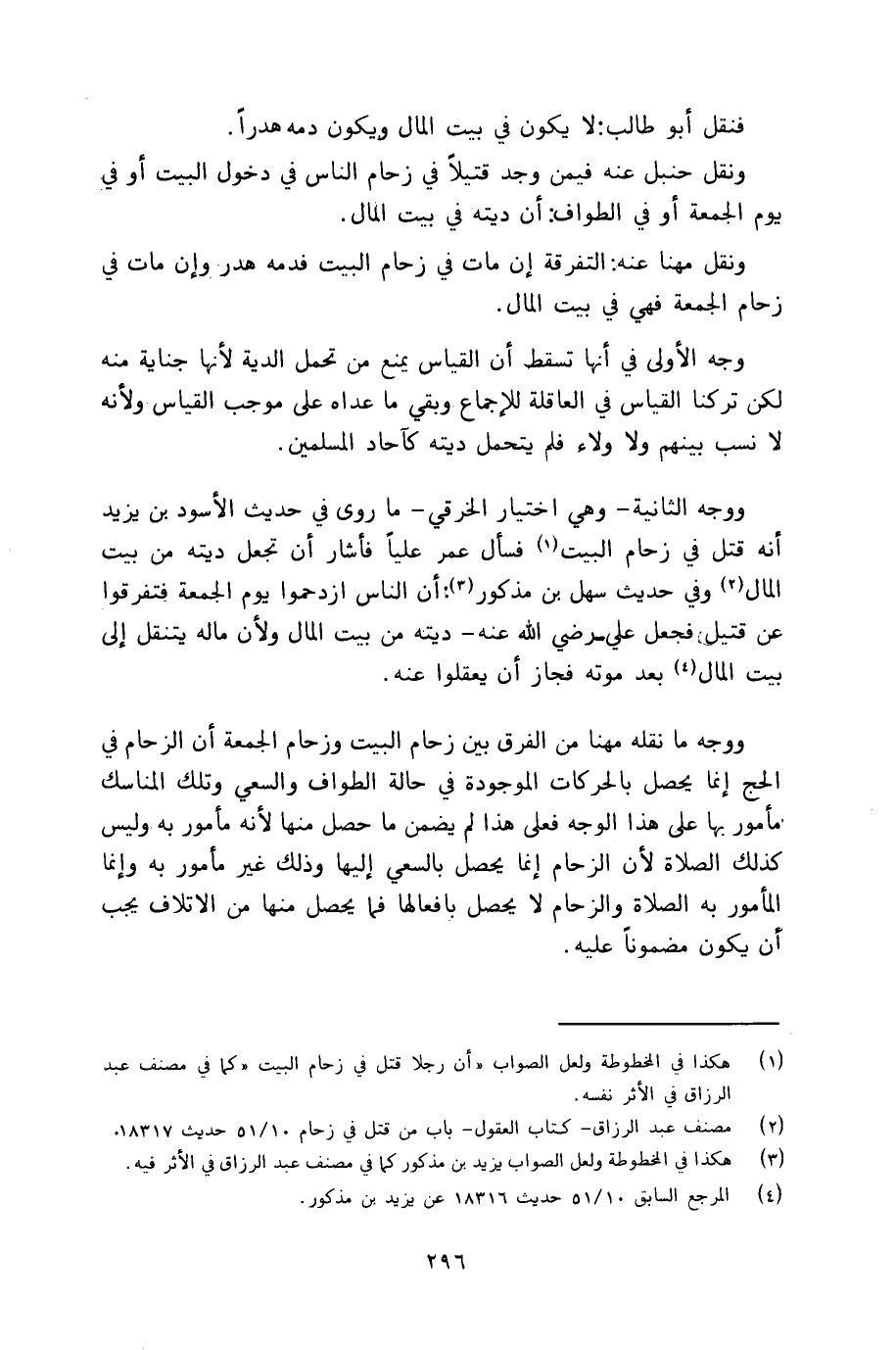 ونقل حنبل عنه فيمن وجد قتيلاً في زحام الناس في دخول البيت أو في يوم الجمعة أو في الطواف: أن ديته في بيت المال.