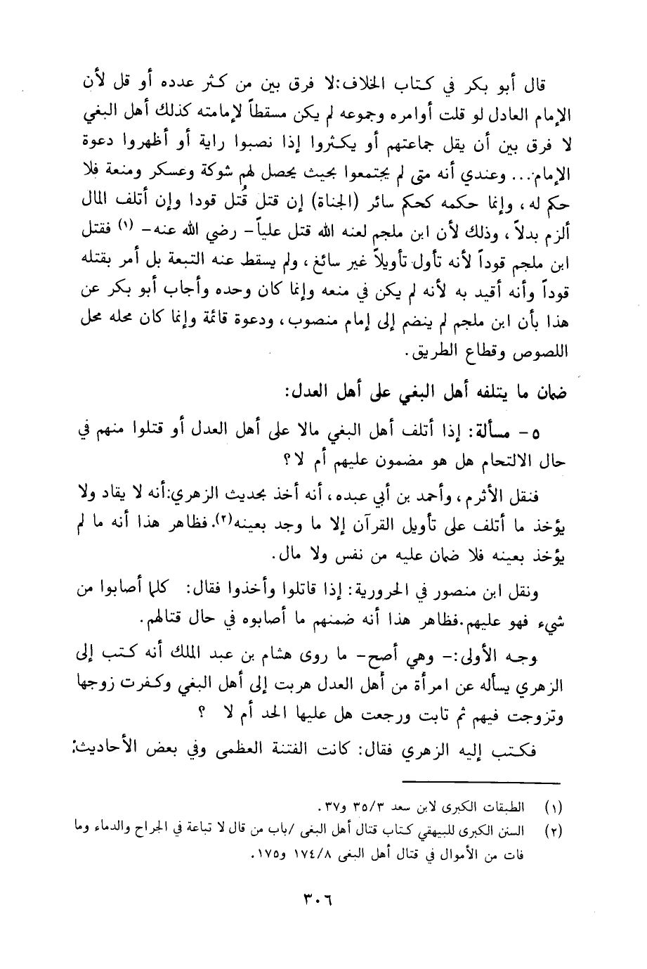 5 - مسألة: إذا أتلف أهل البغي مالاً على أهل العدل أو قتلوا منهم في حال الالتحام هل هو مضمون عليهم أم لا؟