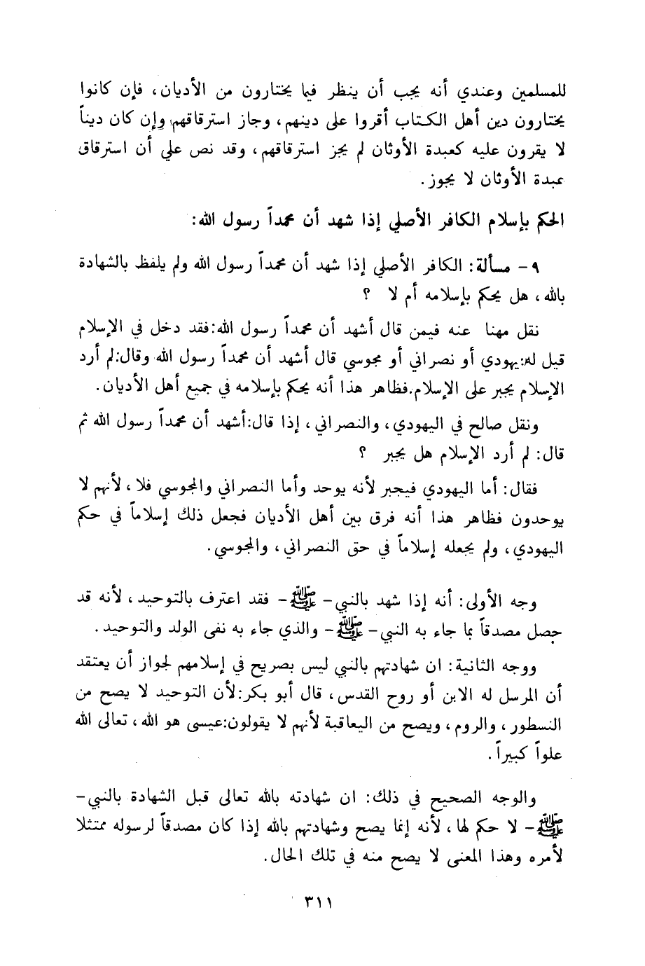 الحكم بإسلام الكافر الأصلي إذا شهد أن محمداً رسول الله: