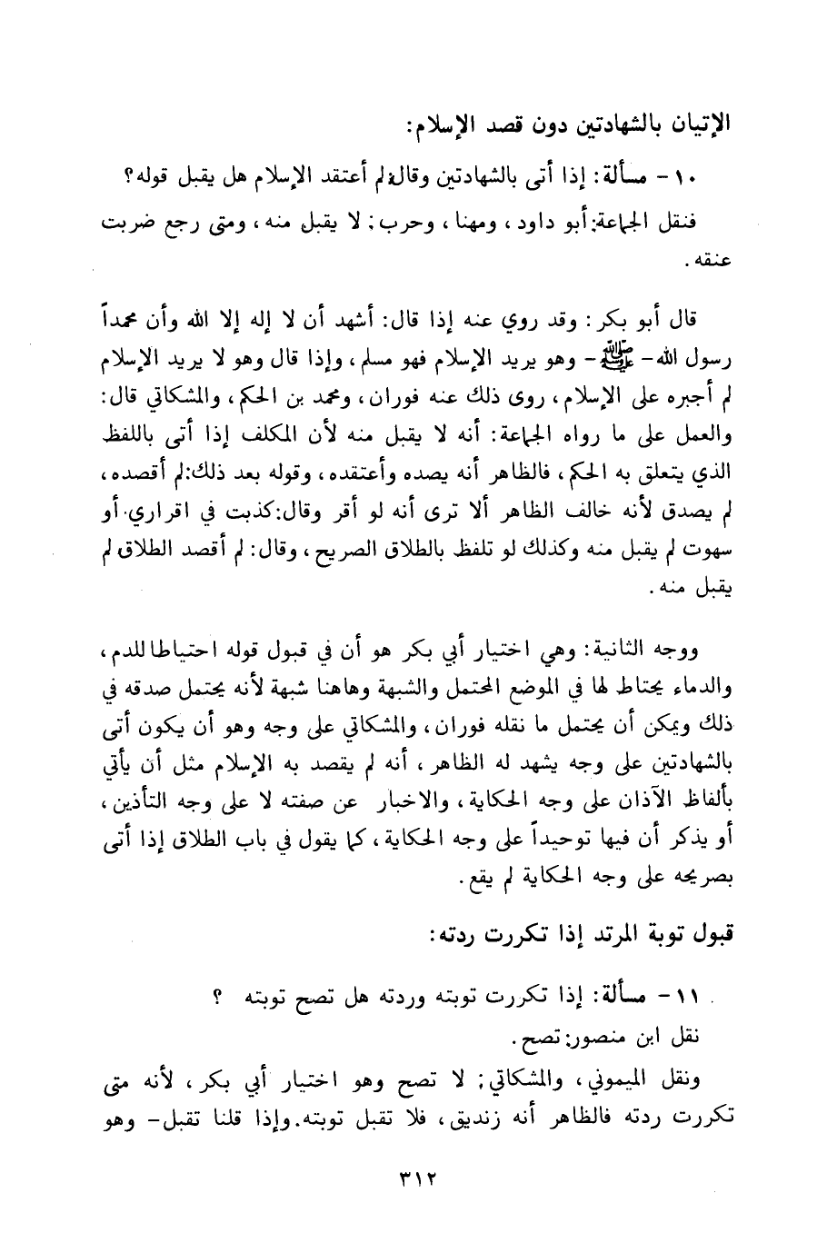 10 - مسألة: إذا أتى بالشهادتين وقال: لم أعتقد الإسلام هل يقبل قوله؟