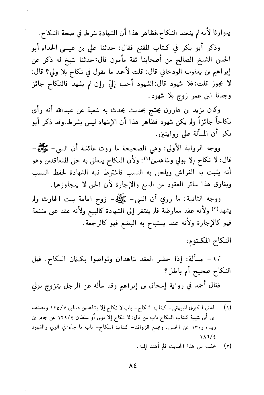 10 - مسألة: إذا حضر العقد شاهدان وتواصوا بكتمان النكاح. فهل النكاح صحيح أم باطل؟