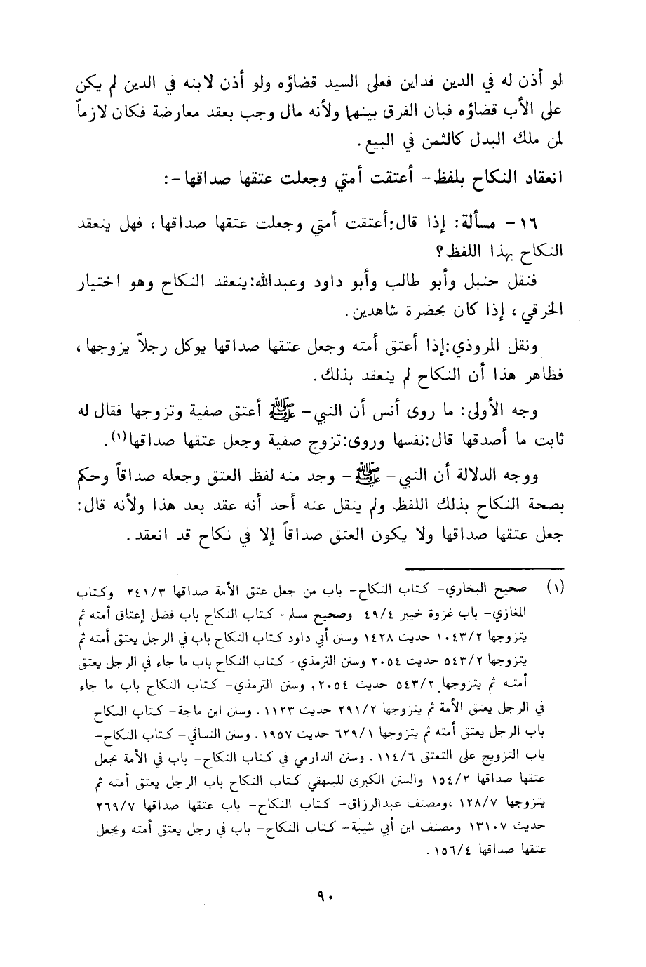 انعقاد النكاح بلفظ ـ أعتقت أمتي وجعلت عتقها صداقها ـ: