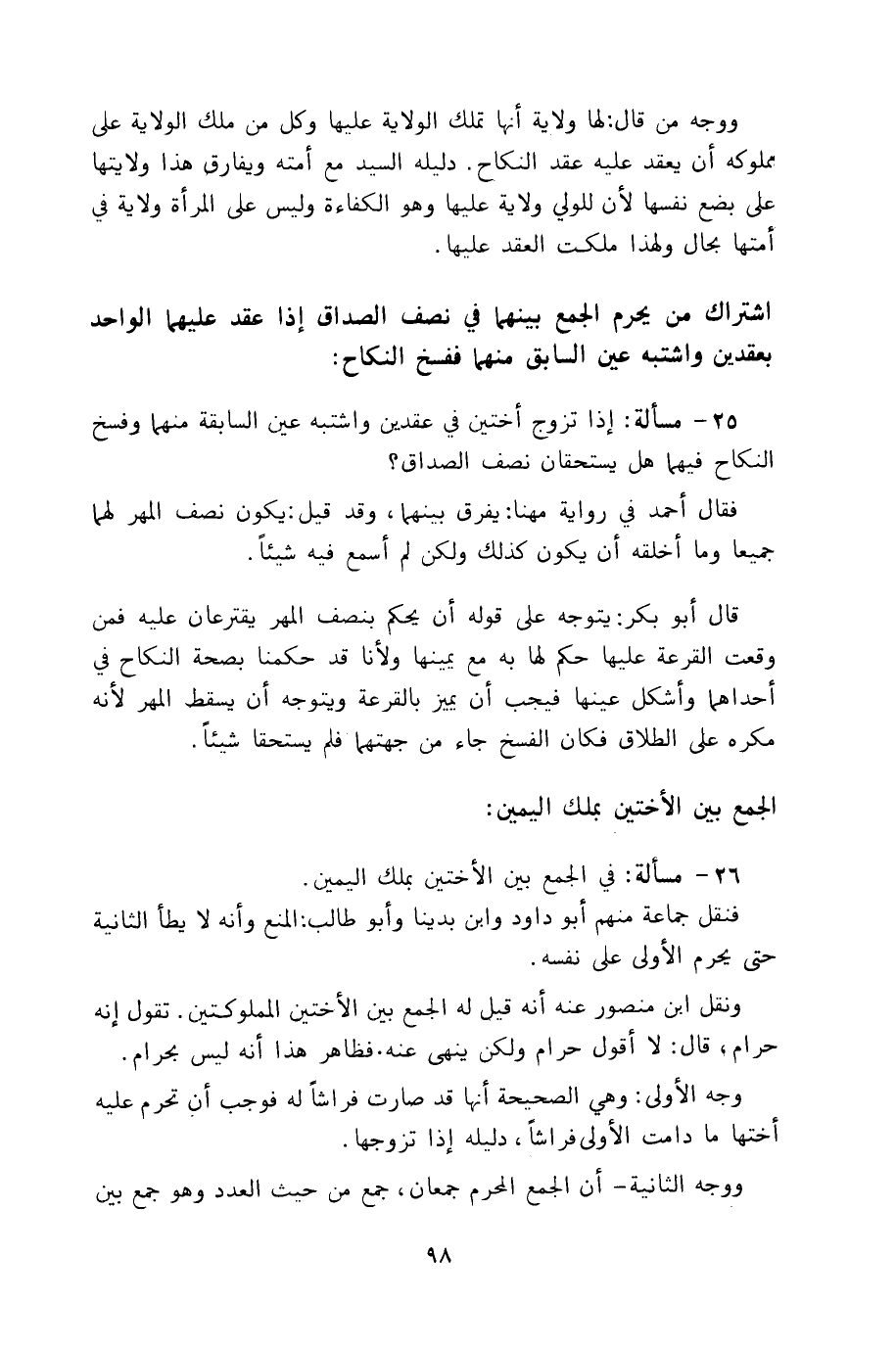 26 - مسألة: في الجمع بين الأختين بملك اليمين.