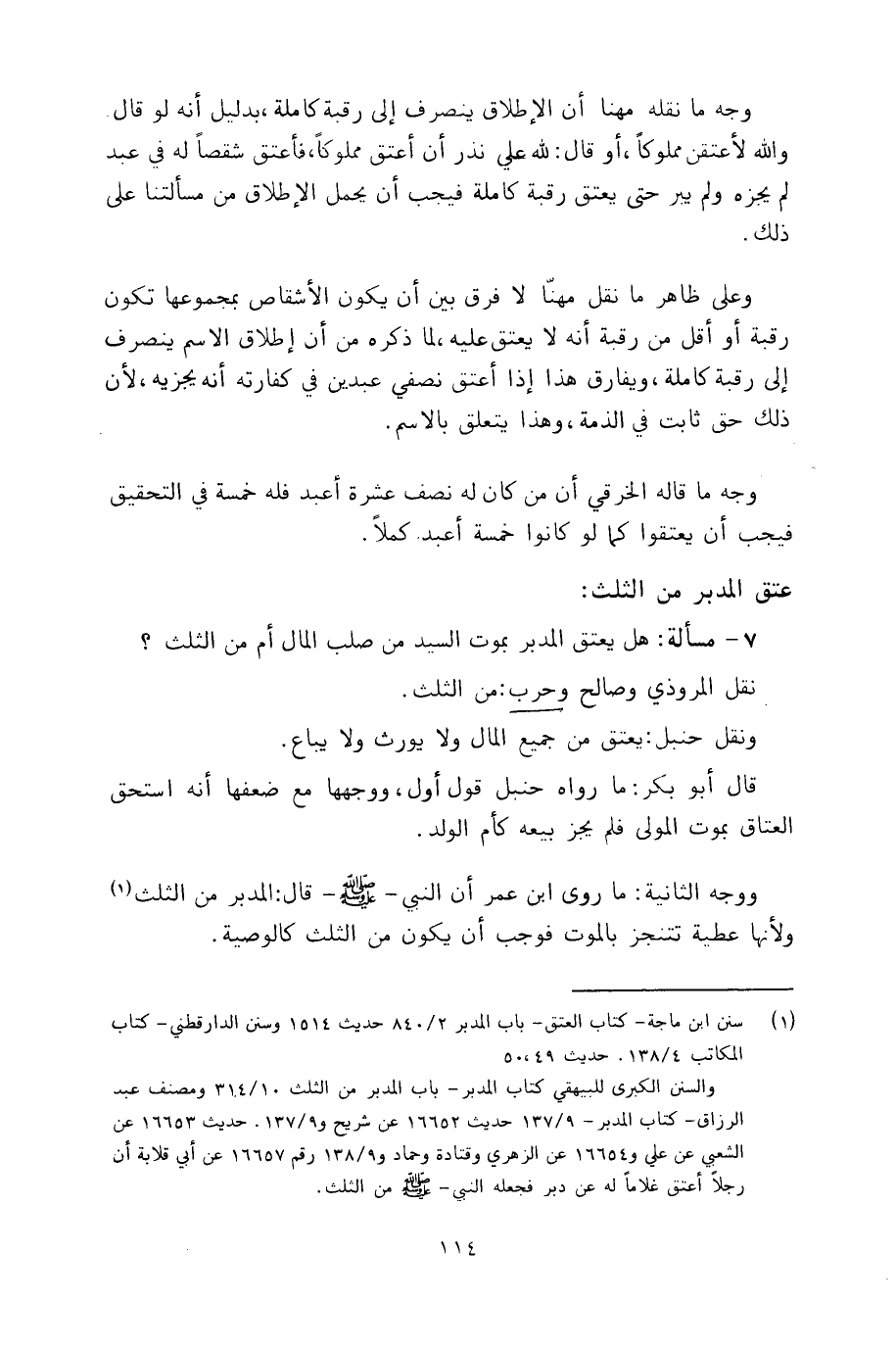 7 - مسألة: هل يعتق المدبر بموت السيد من صلب المال أم من الثلث؟