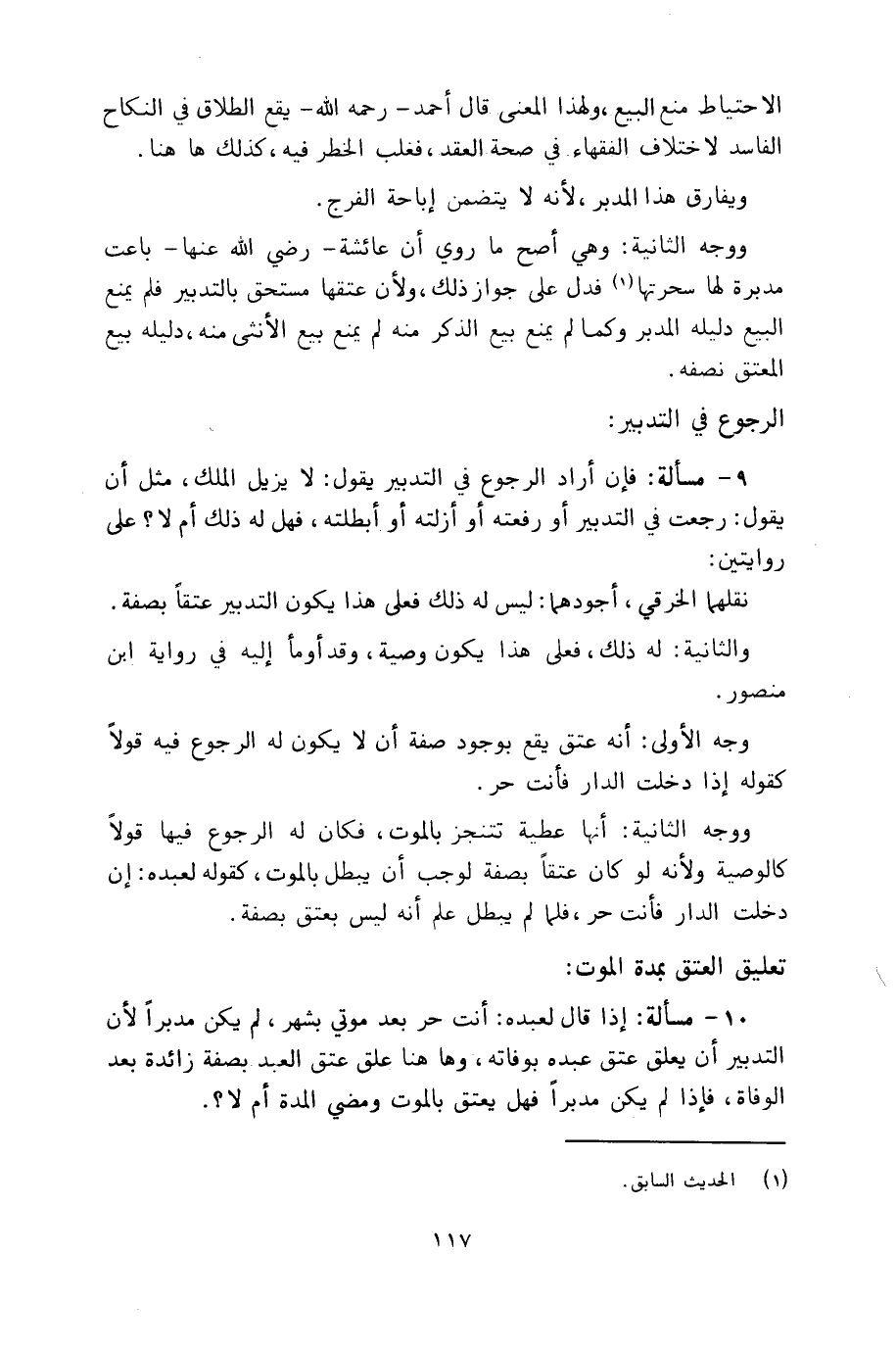 9 - مسألة: فإن أراد الرجوع في التدبير يقول: لا يزيل الملك، مثل أن يقول: رجعت في التدبير أو رفعته أو أزلته أو أبطلته، فهل له ذلك أم لا؟ على روايتين: