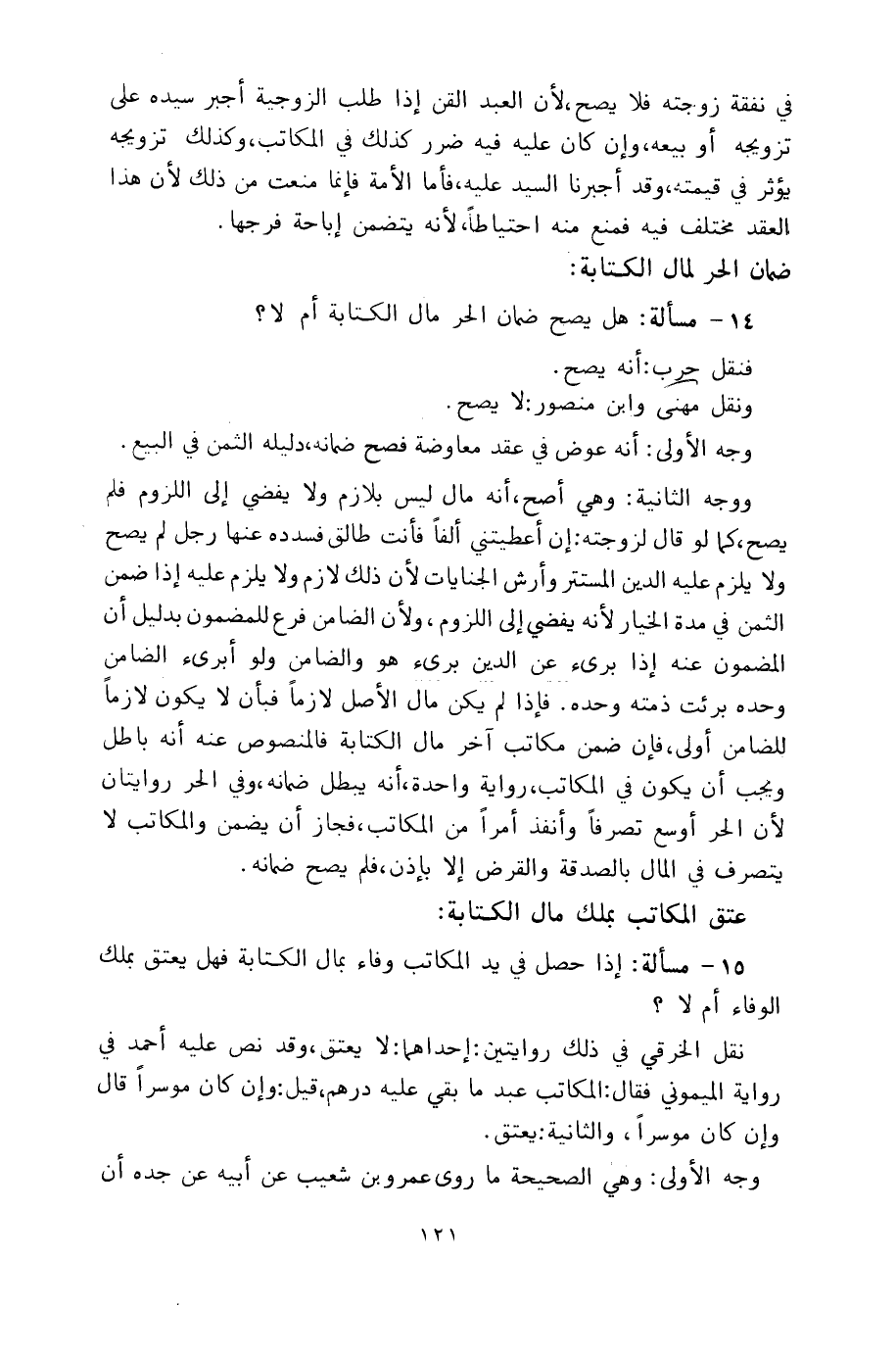 14 - مسألة: هل يصح ضمان الحر مال الكتابة أم لا؟