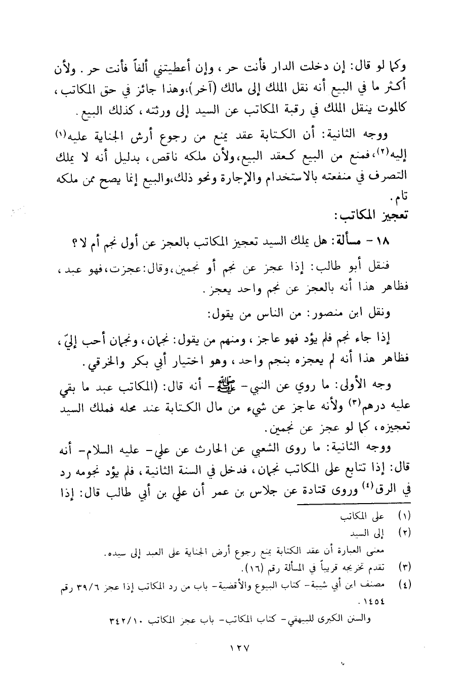 18 - مسألة: هل يملك السيد تعجيز المكاتب بالعجز عن أول نجم أم لا؟