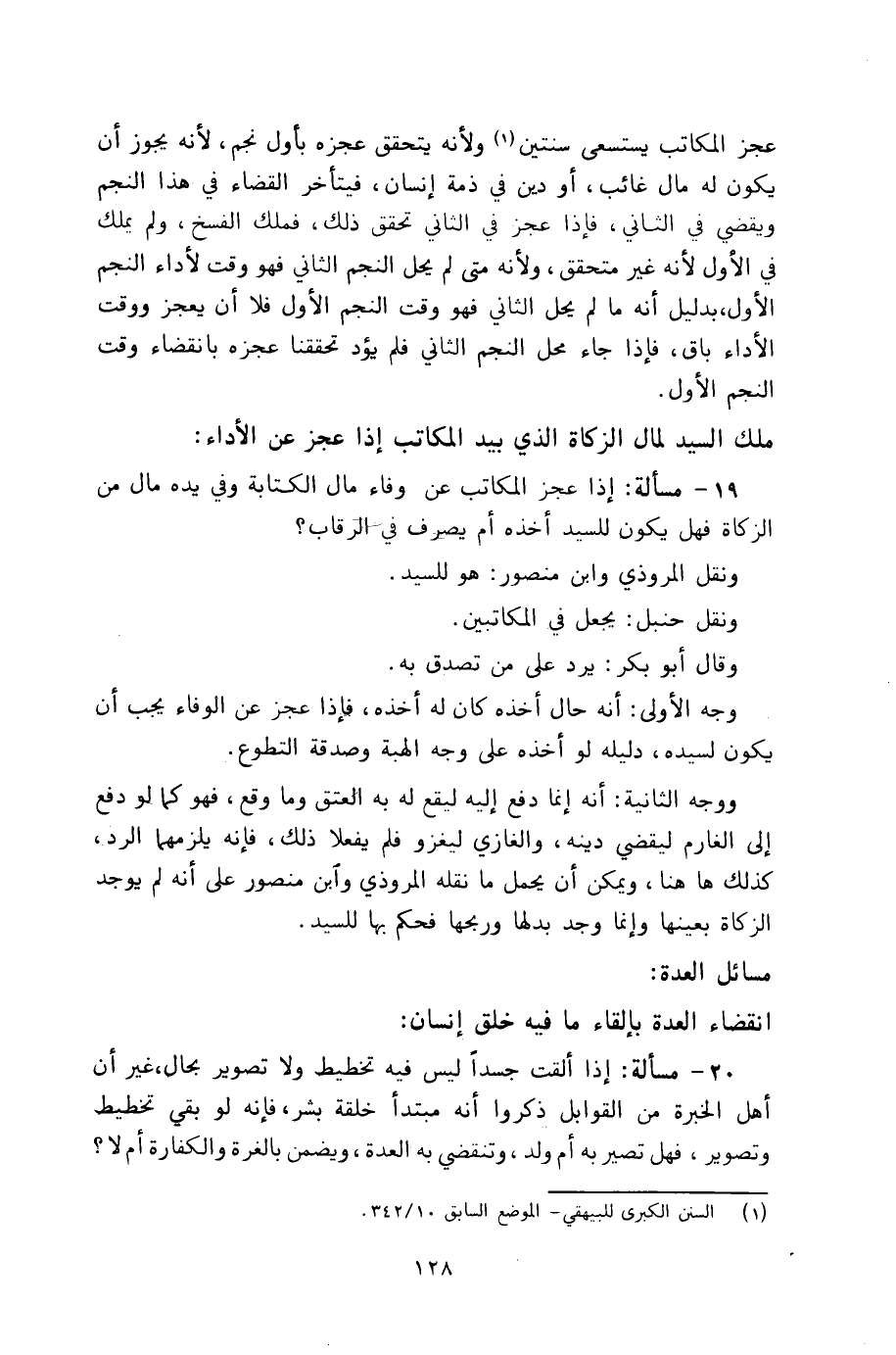 19 - مسألة: إذا عجز المكاتب عن وفاء مال الكتابة وفي يده مال من الزكاة فهل يكون للسيد أخذه أم يصرف في الرقاب؟