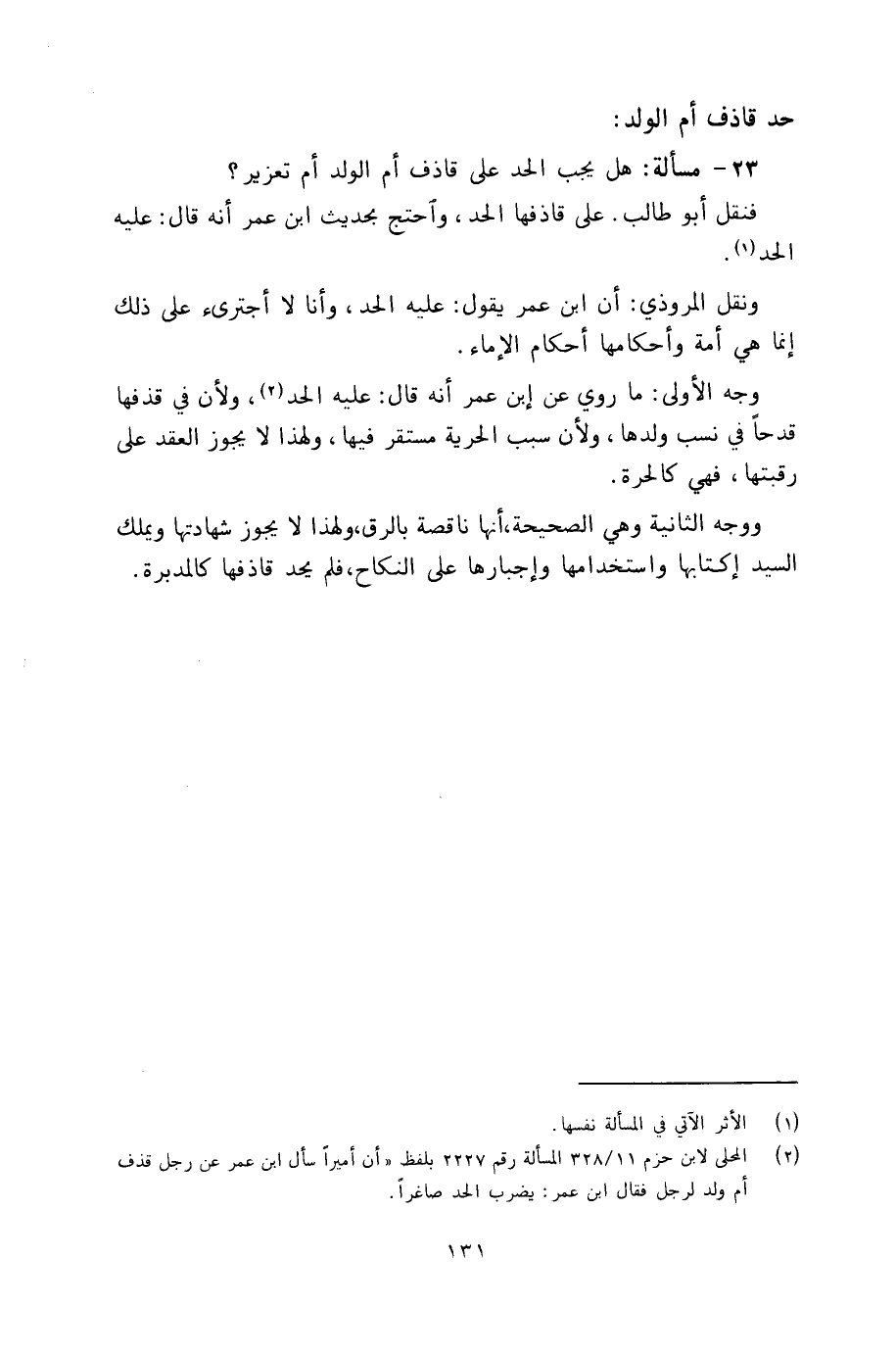 23 - مسألة: هل يجب الحد على قاذف أم الولد أم تعزير؟