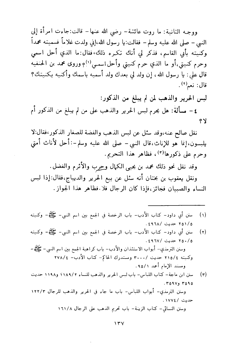 4 - مسألة: هل يحرم لبس الحرير والذهب على من لم يبلغ من الذكور أم لا؟
