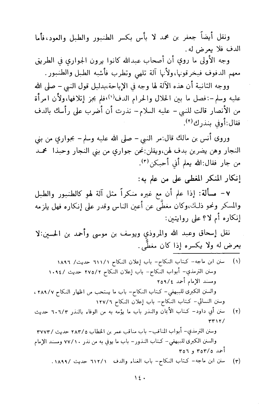 ونقل أيضاً جعفر بن محمد لا بأس بكسر الطنبور والطبل والعود، فأما الدف فلا يعرض له.
