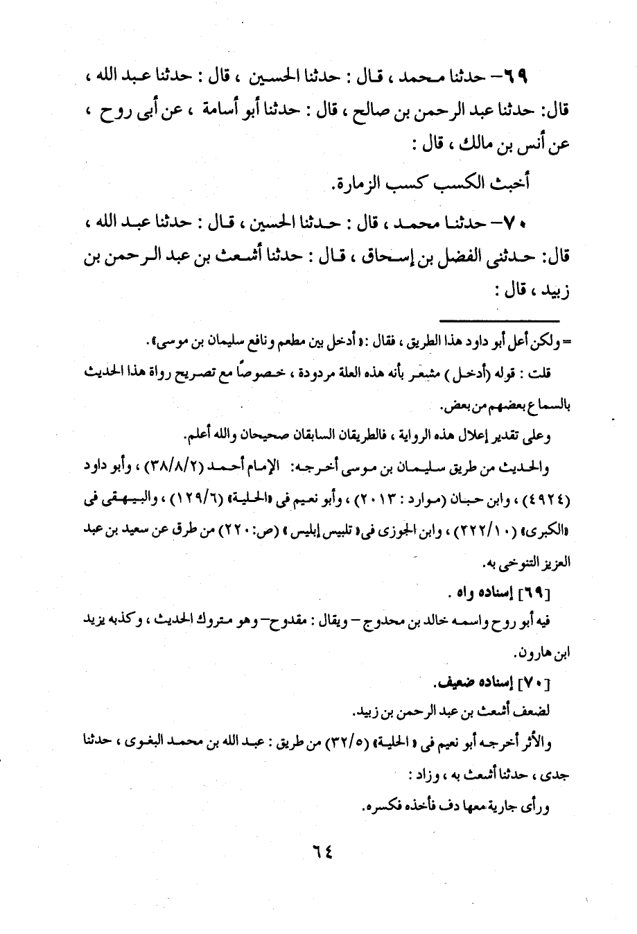 67 - حَدَّثَنَا مُحَمَّدٌ، قَالَ: حَدَّثَنَا الْحُسَيْنُ، قَالَ: حَدَّثَنَا عَبْدُ اللَّهِ، قَالَ: حَدَّثَنَا عَبْدُ الرَّحْمَنِ بْنُ صَالِحٍ , قَالَ: حَدَّثَنَا أَبُو أُسَامَةَ , عَنْ أَبَى رَوْحٍ , عَنْ أَنَسِ بْنِ مَالِكٍ , قَالَ: «§أَخْبَثُ الْكَسْبِ كَسْبُ الزَّمَّارَةِ»