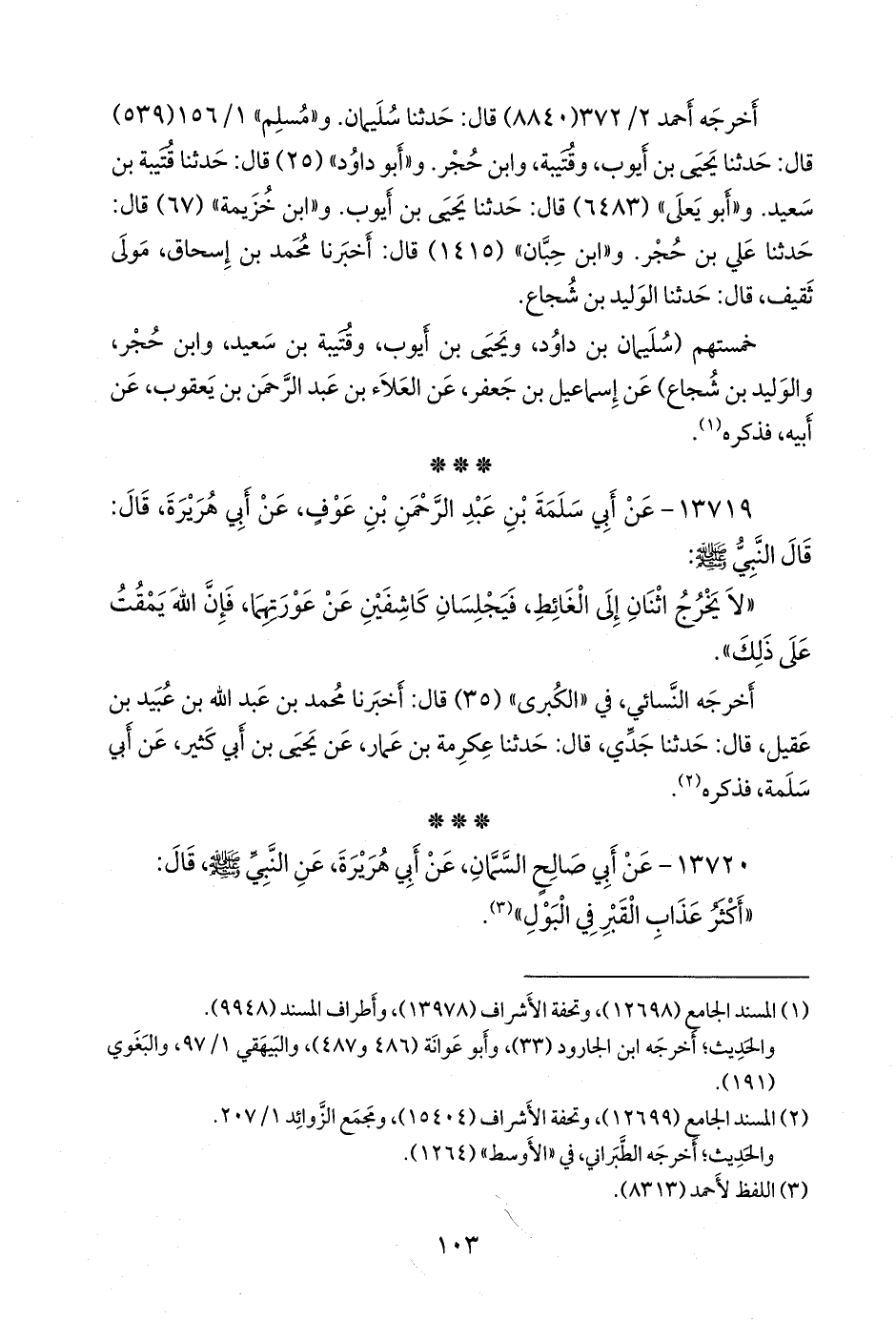 (¬٢) المسند الجامع (١٢٧٠٠)، وتحفة الأشراف (١٢٥٠١)، وأطراف المسند (٩٢١٣).