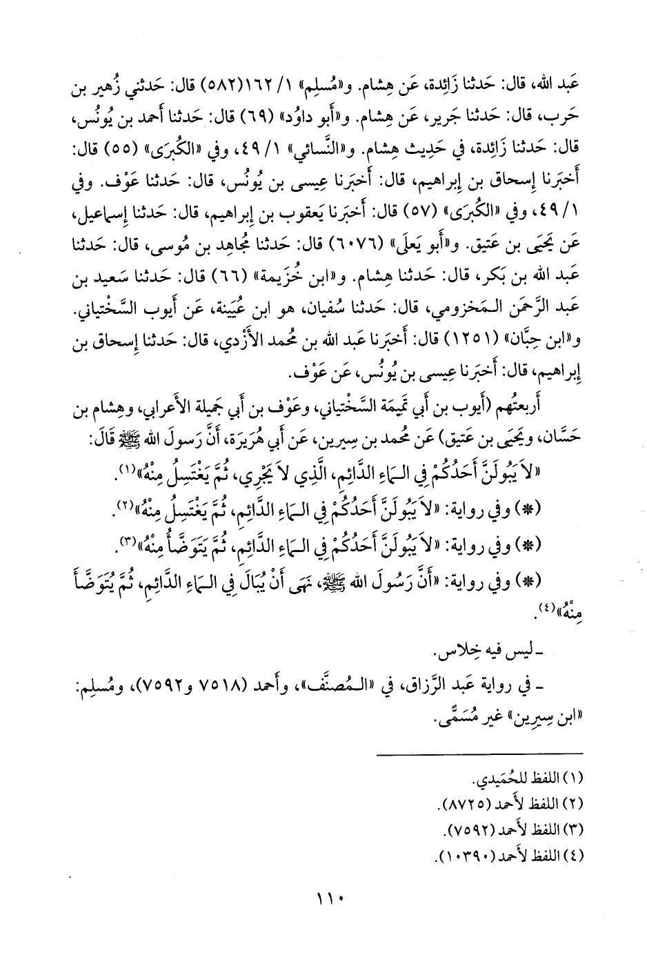 «لا يبولن أحدكم في الماء الدائم، ثم يتوضأ منه».