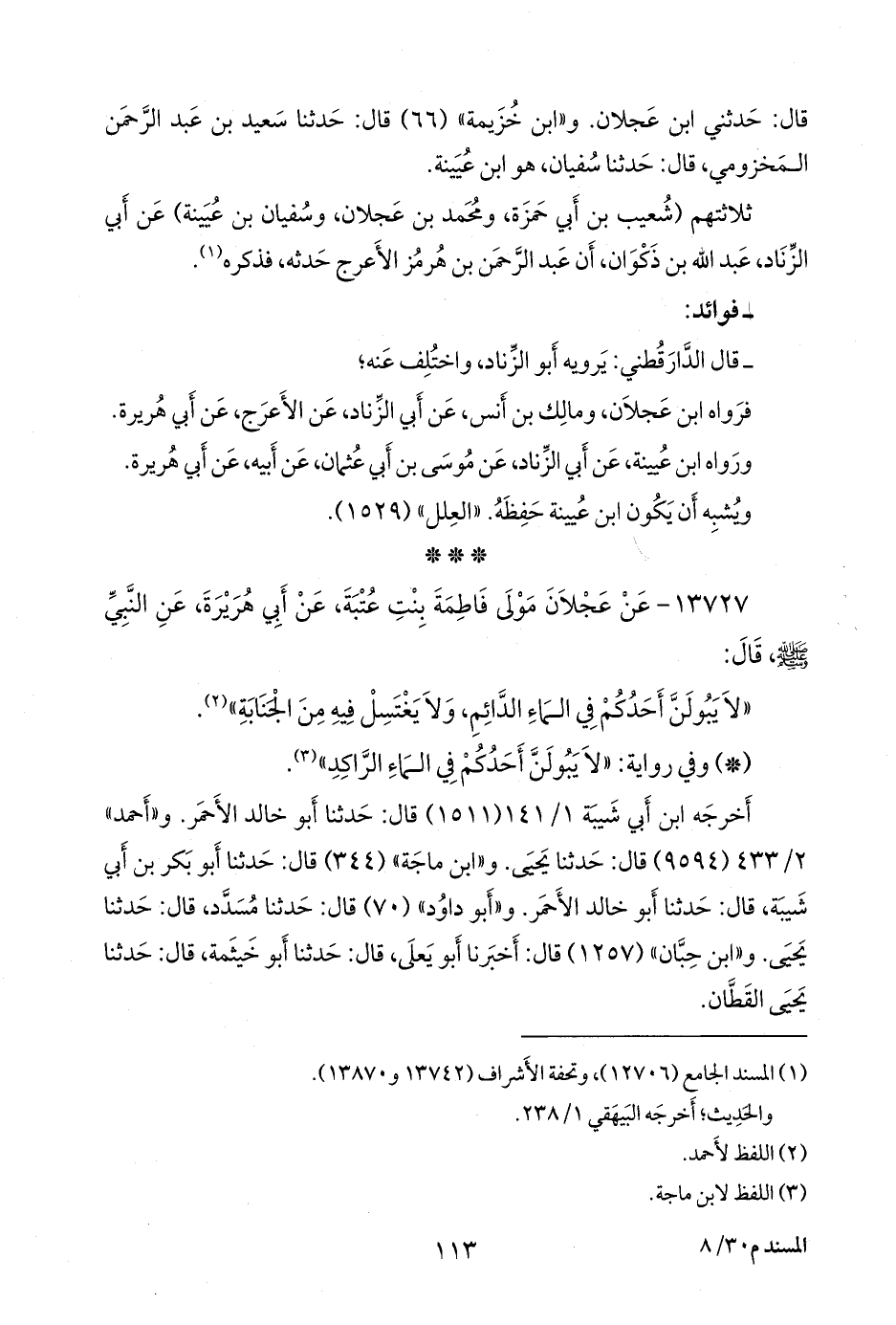 (¬٣) المسند الجامع (١٢٧٠٨)، وتحفة الأشراف (١٤١٣٧)، وأطراف المسند (١٠٠١٥).