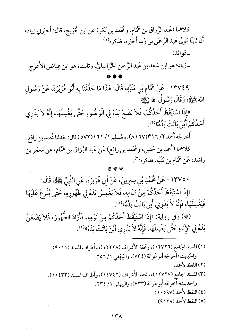 ١٣٧٤٩ - عن همام بن مُنَبِّه، قال: هذا ما حدثنا به أَبو هريرة، عن رسول الله صَلى الله عَليه وسَلم وقال رسول الله صَلى الله عَليه وسَلم:
