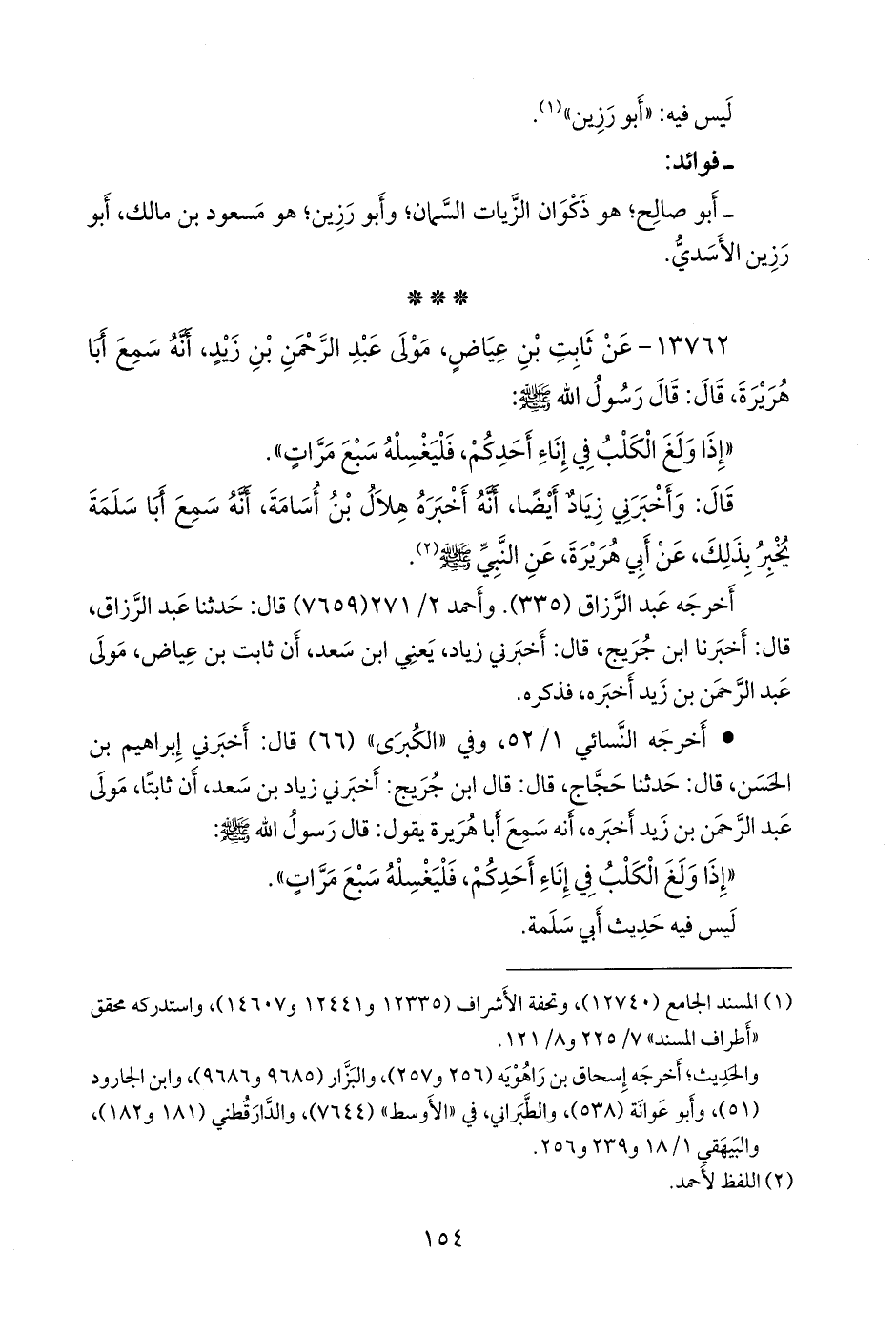 (¬٢) المسند الجامع (١٢٧٤١ و ١٢٧٤٢)، وتحفة الأشراف (١٢٢٣٠ و ١٥٣٥٢)، وأطراف المسند (٩٠١٠).