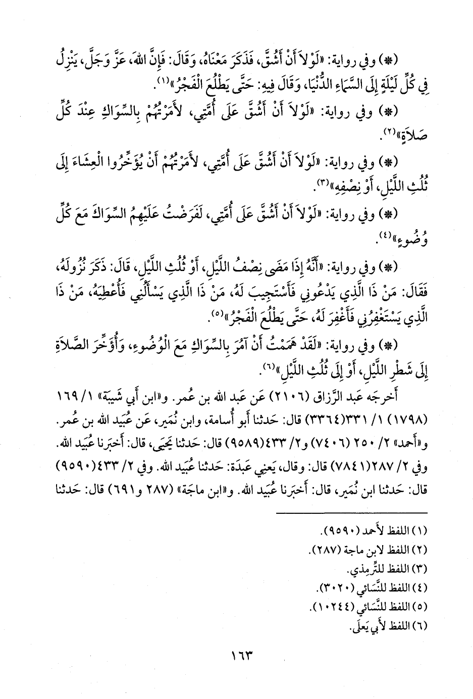 - وفي رواية: «لقد هممت أن آمر بالسواك مع الوضوء، وأؤخر الصلاة إلى شطر الليل، أو إلى ثلث الليل» (¬١).